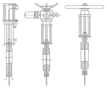 本產品驅動裝置可采用電動、氣動、手動、傘齒輪轉動等裝置。汽動裝置可安裝空氣過濾器、電磁閥、感應器,如安裝以上驅動裝置,汽動裝置應在合同中注明。
