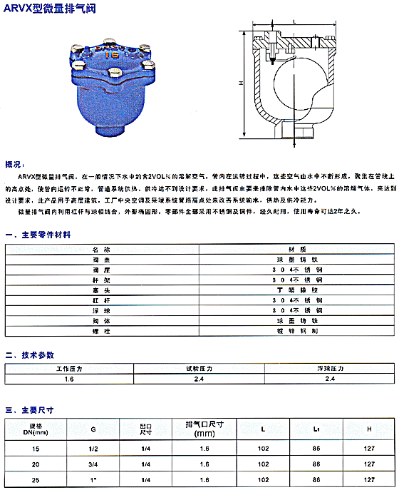 APVX自動(dòng)排氣閥,在一般情況下,水中約含2V0L%的溶解空氣,在輸水過程中,這些空氣由水中不斷釋放出來,聚集在管線的高點(diǎn)處,形成空氣袋(AIR POCKET),使輸水變得困難,系統(tǒng)輸水能力可因此下降約5-15%。此微量排氣閥主要功能就是排除這2VOL%的溶解空氣,并適合裝置于高層建筑,廠區(qū)內(nèi)配管,小型泵站用以保護(hù)或改善系統(tǒng)的輸水功率及節(jié)約能源。