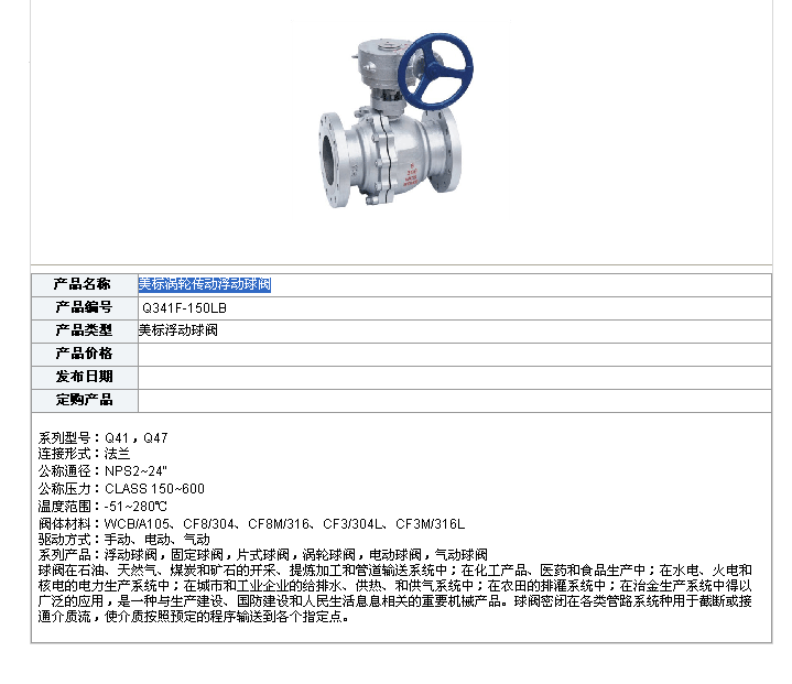 美標渦輪傳動浮動球閥是我公司的優(yōu)質(zhì)產(chǎn)品之一,在上海美標渦輪傳動浮動球閥廠家中享有極高的品質(zhì)聲譽與服務(wù)評價.