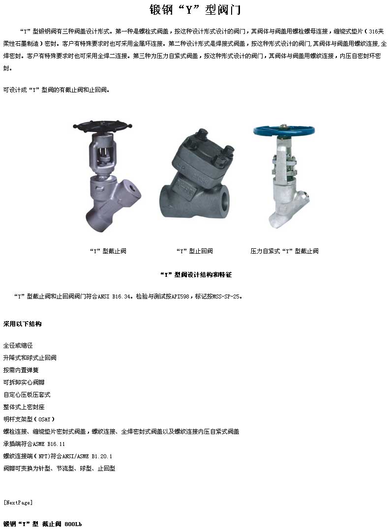 鍛鋼Y型閥門