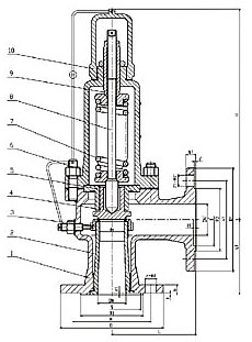 A41H型適用于工作溫度≤300℃的石油氣、空氣、水等介質(zhì)的設(shè)備或管路上。A41Y-P/R型適用于工作溫度≤200℃有腐蝕性介質(zhì)的設(shè)備或管路上,作為超壓保護(hù)裝置。連接法蘭標(biāo)準(zhǔn)按JB/T……94/系列1。 |